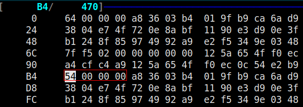 The offset is 0x54, so we must add the block offset, 0x64, which means the body is at offset 0xB8 within the outer container (next to its offset).